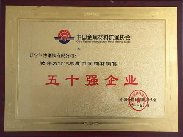 授予榮譽:2016年度中國鋼材銷售五十強企業(yè)