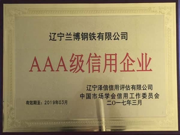 被授企業(yè):遼寧蘭博鋼鐵有限公司
